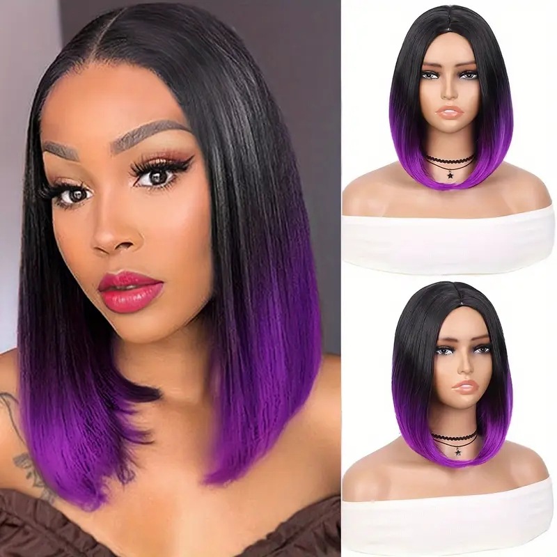 外国貿易クロスボーダーウィッグレディースショート染めパープルヨーロッパとアメリカのファッションミッドパートショートストレートヘア化学繊維フルヘッドカバーローズネット