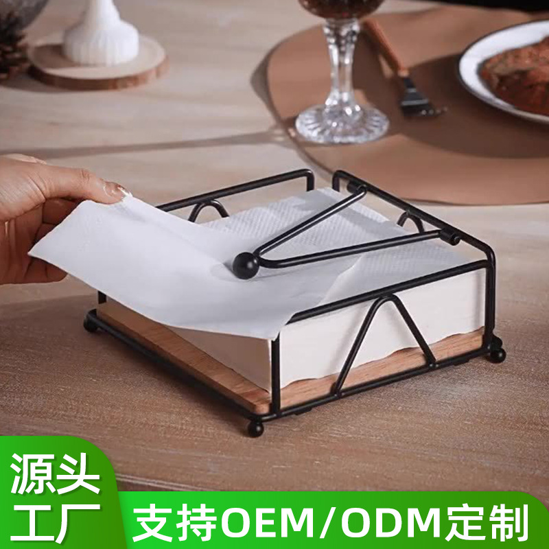 アマゾンレストランの鉄芸ティッシュ棚の実木ベースのナプキン収納棚の透かし彫りは厚さを調節して紙箱を挟みます。