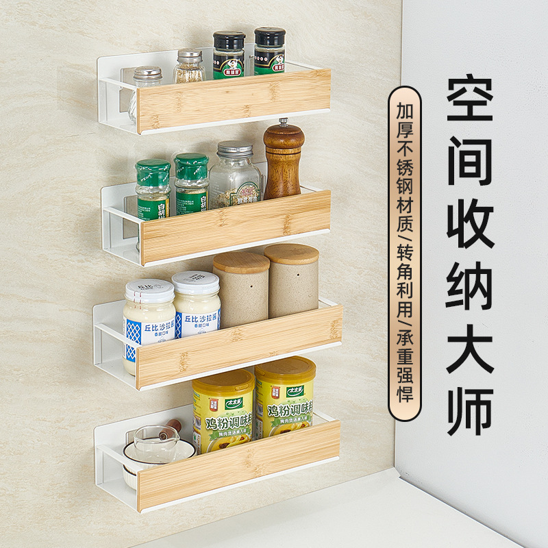 国境を越えた台所の壁掛け式竹木の置物は、冷蔵庫の棚を貼ることなく、収納棚を掛けて、穴を開けない調味料棚の箱を置くことができます。