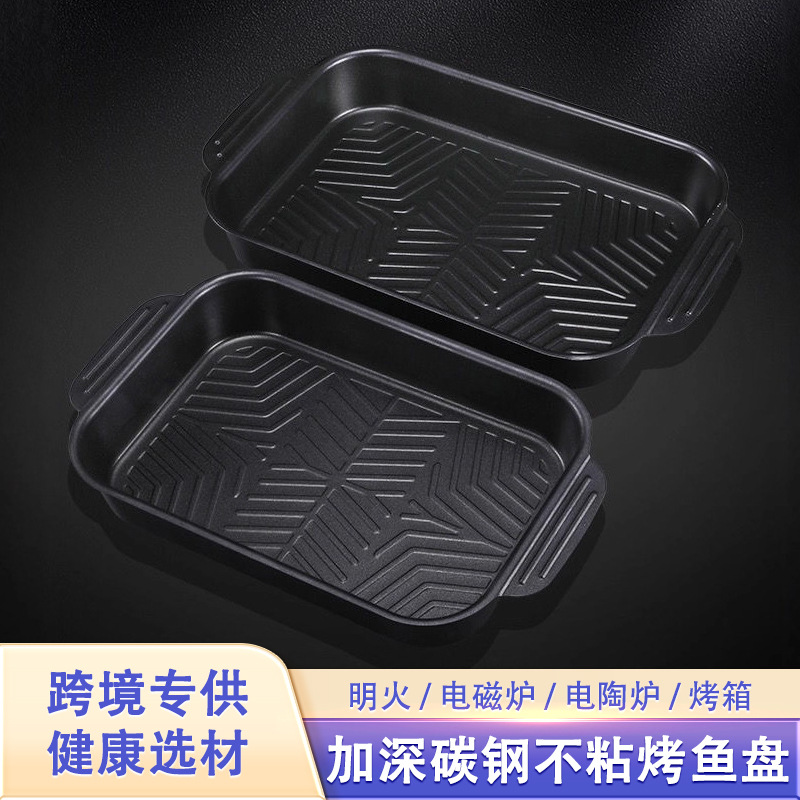 炭素鋼は魚の皿の長方形にくっつかないで、四角の皿の両耳のトレーの紙を深めて魚の皿の業務用のバーベキューの皿の家庭用を包みます。