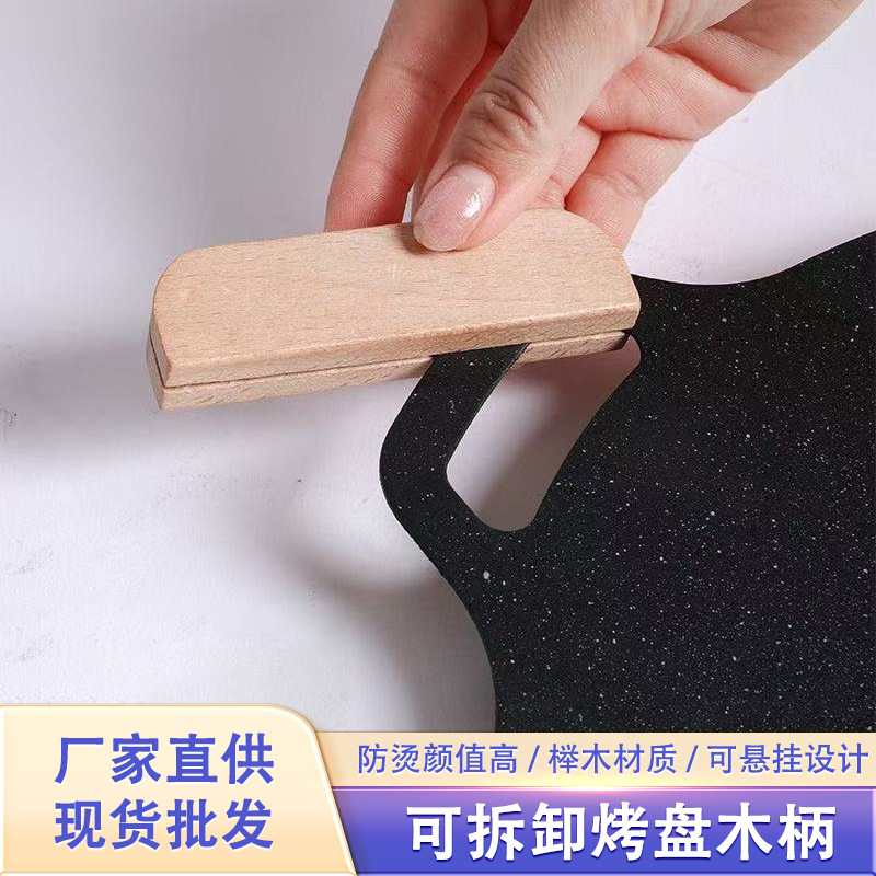 バーベキュープレート木製ハンドル火傷防止木製ハンドル耐熱ポータブルキャンプピクニックハンドルグリルパンハンドル木製火傷防止木製ハンドル