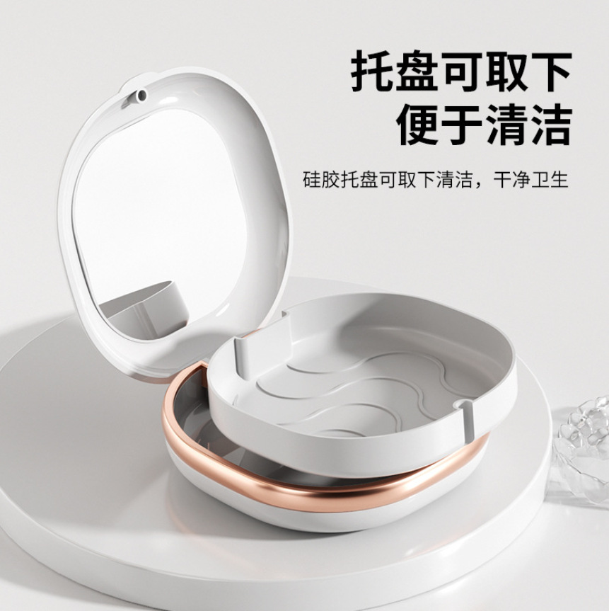 2025新型の歯カバーの収納ケースに浸漬して清潔にして、入れ歯の携帯保存ケースを入れます。