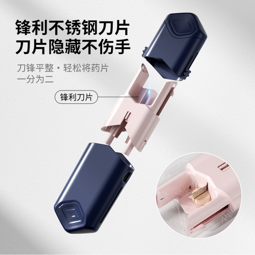 ポータブル引き出し式ピルカッターピル分割ボックス旅行ピルボックス伸縮式ピルカッターミニカッター