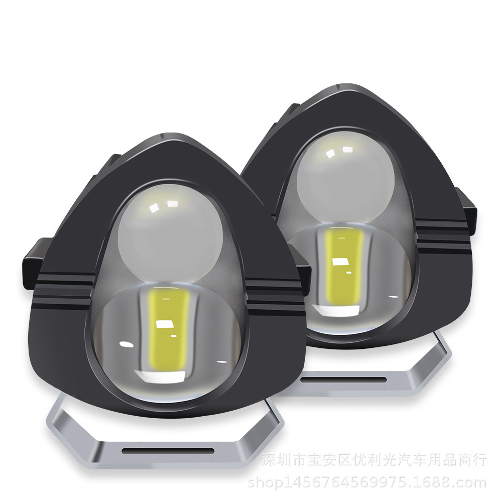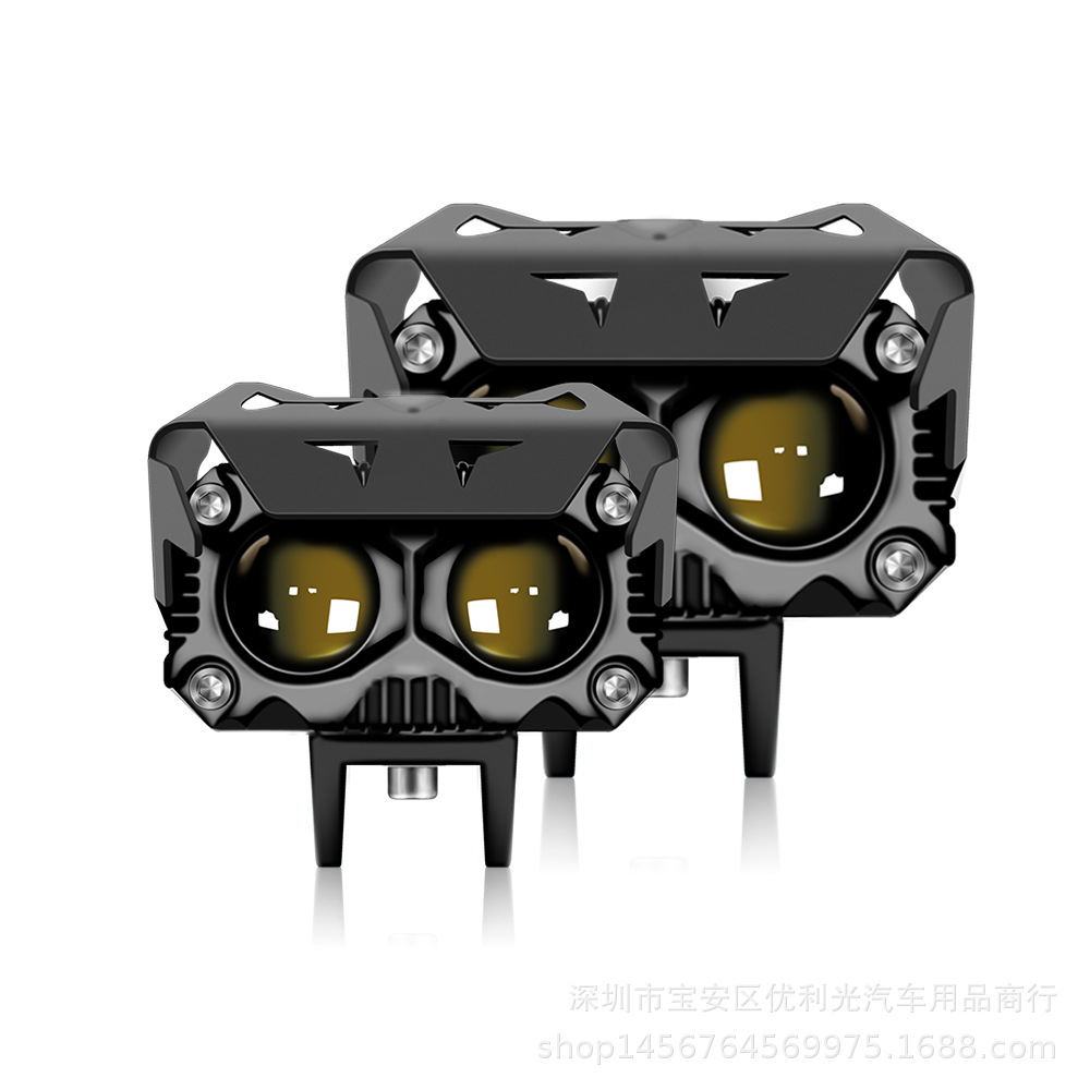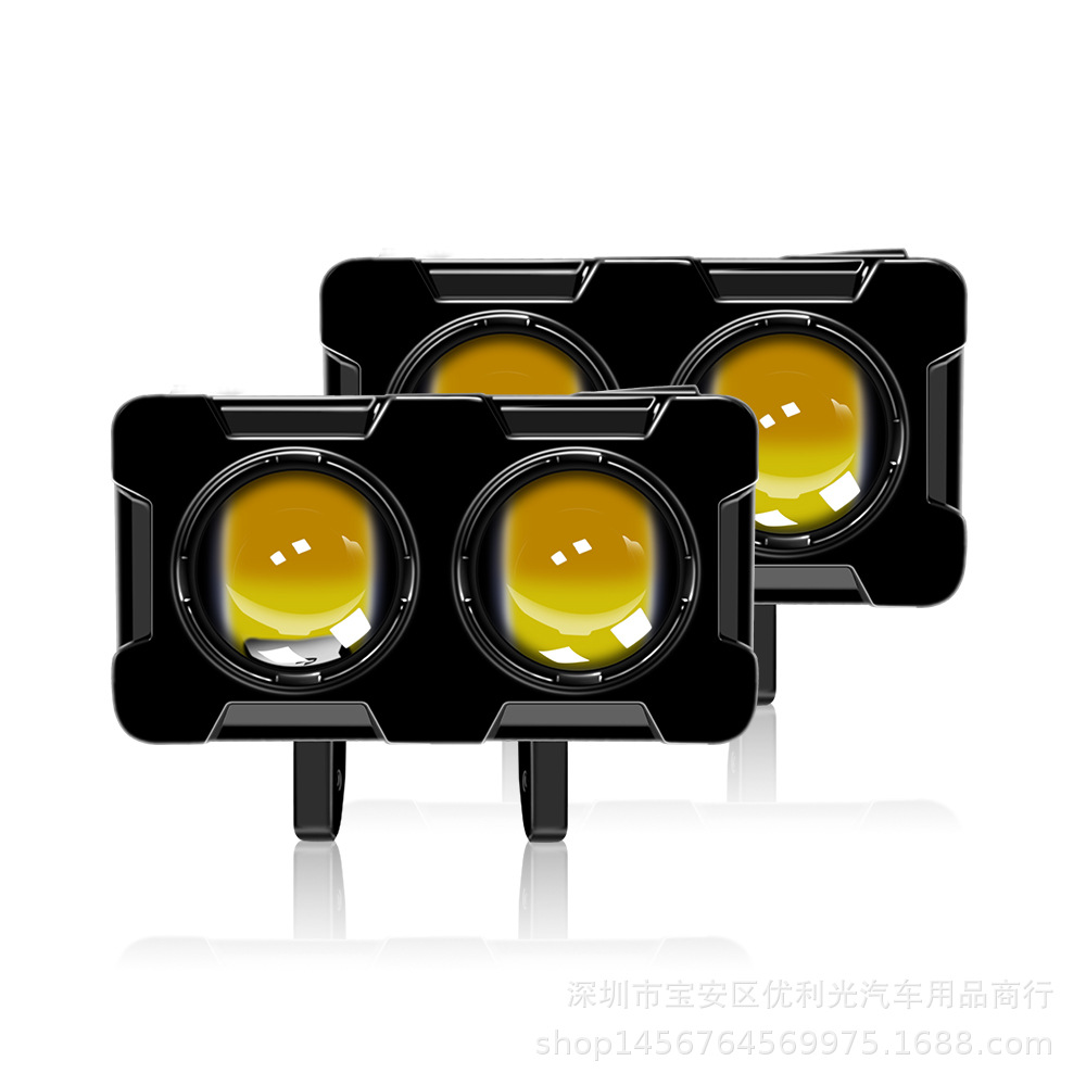 新型自動車オートバイledヘッドライト黄色と白の両光レンズヘッドライトは遠近光オートバイのスポットライトを改造します。