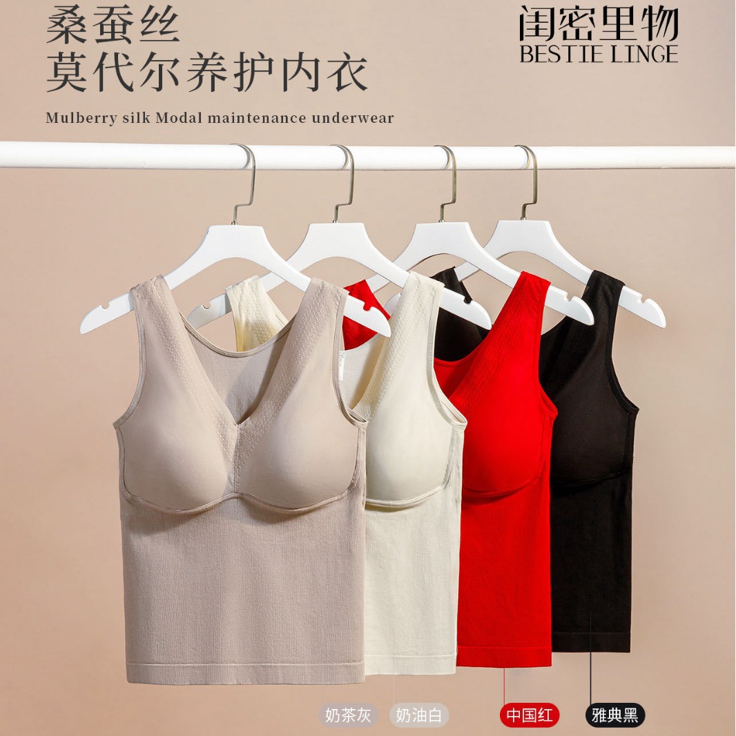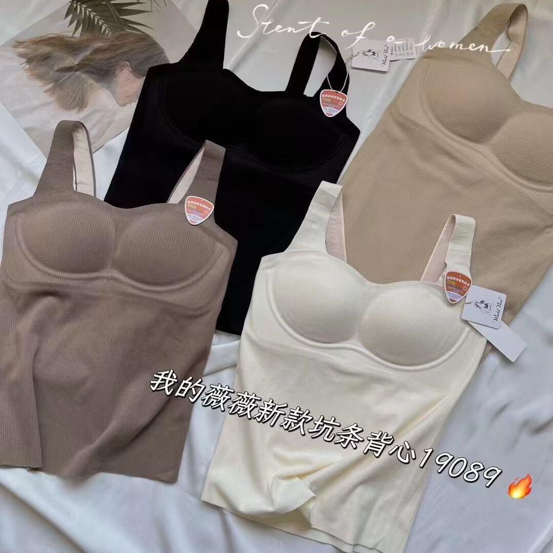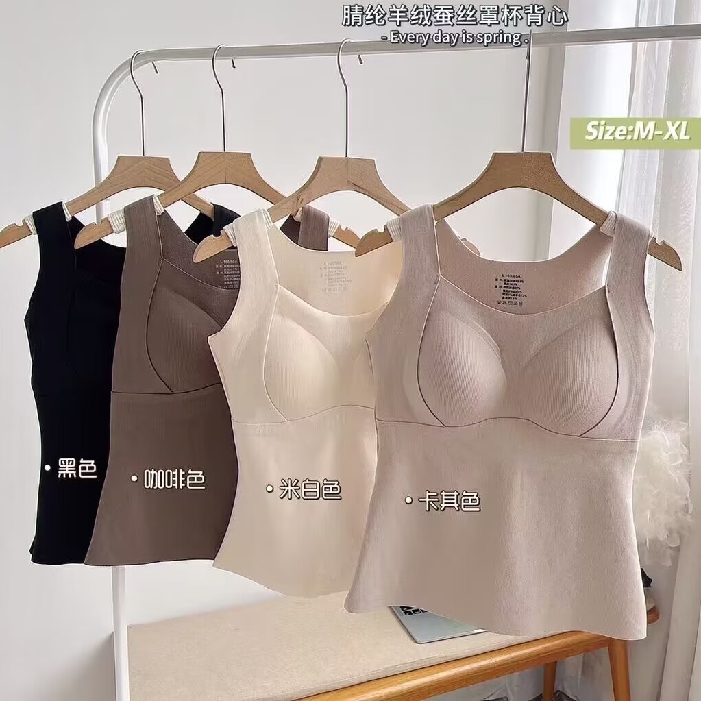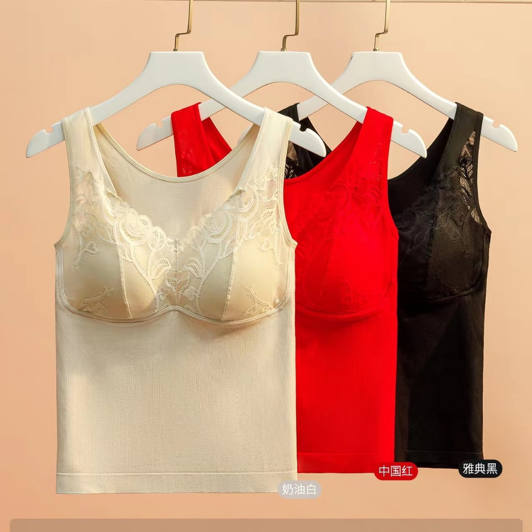 内着高級感秋冬保温キャミソールvネックのアルファベットタイプの胸パッド付きカップ保温ベスト