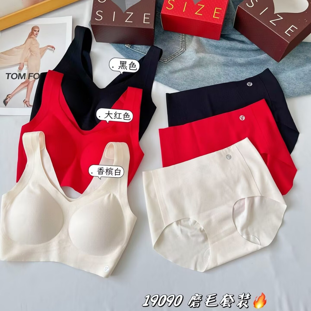 本命年結婚幸運紅下着セット秋冬幅肩ベルト磨毛礼箱にはスチールリングがなく、快適に胸を巻いています。