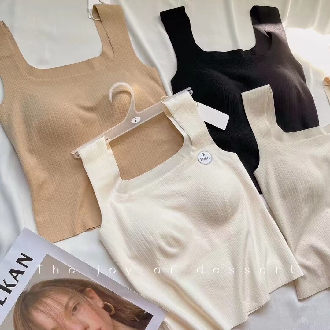 広い肩の方の襟の美背のねじの無痕の保温のベストの2023の一体のカップの無痕のレジャーの肌の発熱は底を打ちます