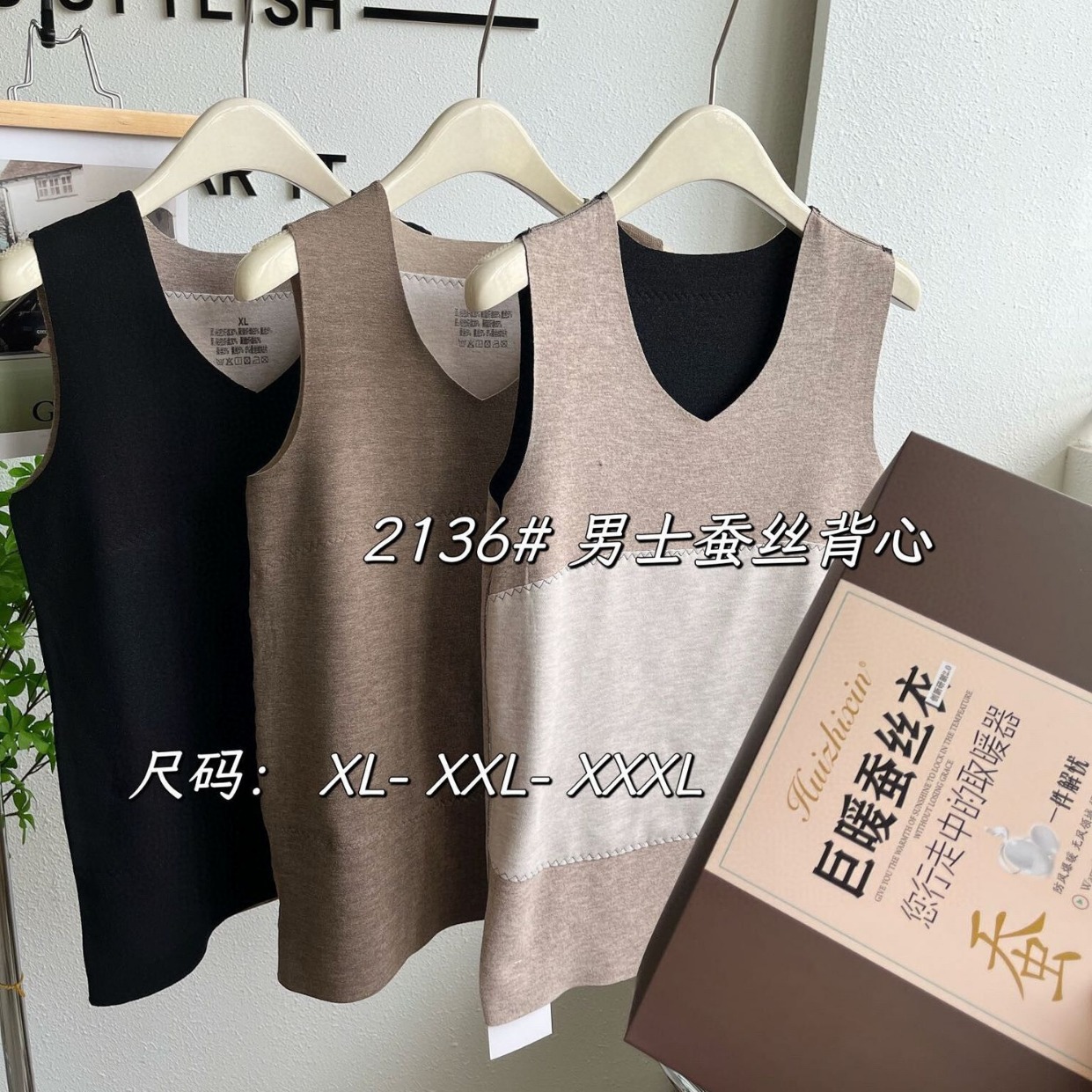 秋冬巨暖男性シルクパッチベスト