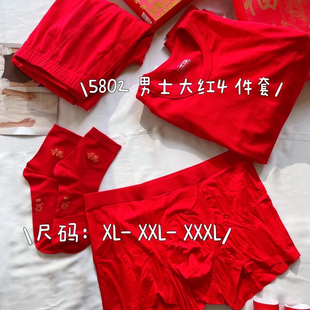 新商品の男性の下着のズボンの靴下の4つのセットのプレゼントの箱の結婚の本命の年の大きい赤色の発熱の保温の秋の服の秋のズボン