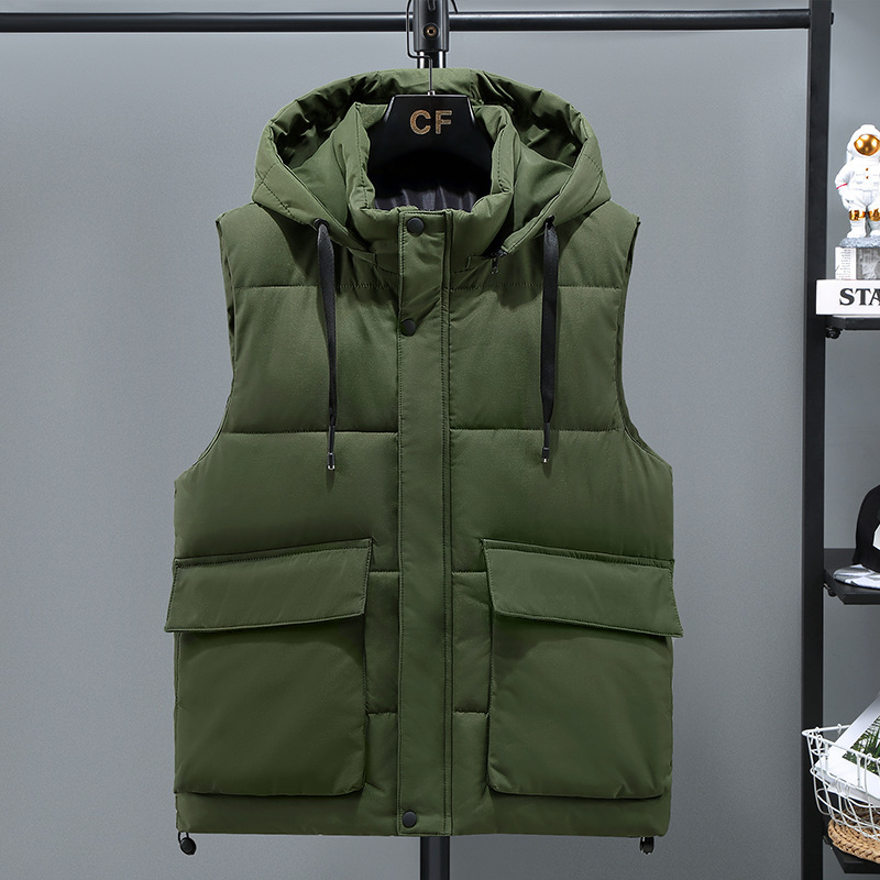 新型レジャー運動立襟袖なしの厚手綿のベストコートと太ったサイズの多ポケットファスナーのベスト男