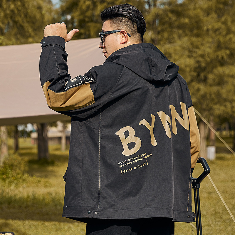 2025新型の増肥プラスサイズの突撃服と帽子のジャケットのファッションブランドの工装アウトドア防風コートの機能風