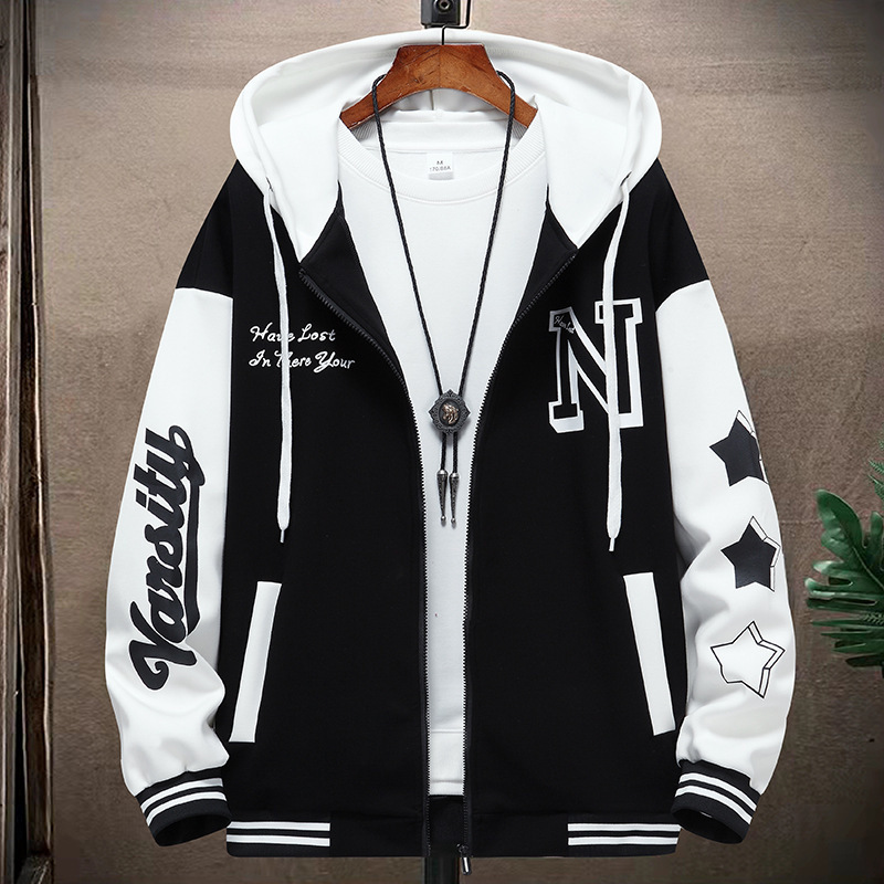 2025春秋の新型青少年の大きいサイズの帽子の衛の男性の韓国版の潮流の上で服の帽子のシャツのカーディガンのコートに行きます。