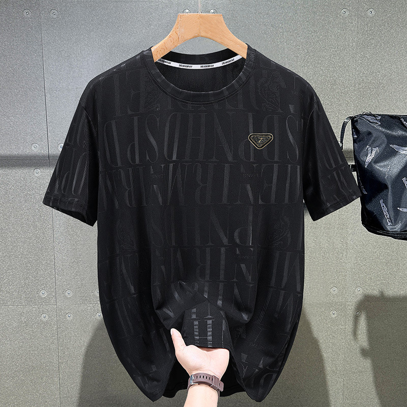 2025夏の男性の大きいサイズの半袖のtシャツのゆったりした丸首のスポーツシャツの太った綿の半袖のカジュアルな夏の上着