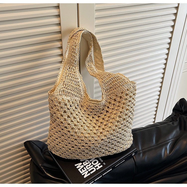 ショルダー大容量織バッグストローバッグトートバッグ2025新作通勤バッグラフィア脇の下ホリデーバッグ