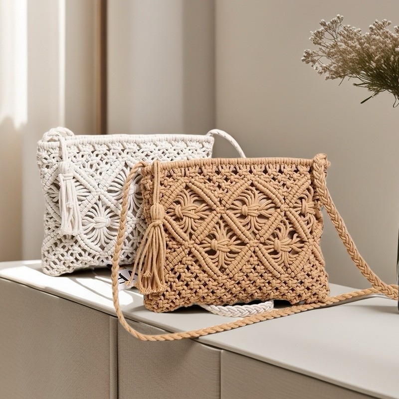 2025新型草編み包み文芸手編み包み女性カジュアル綿糸包み海辺休暇ショルダーバッグ