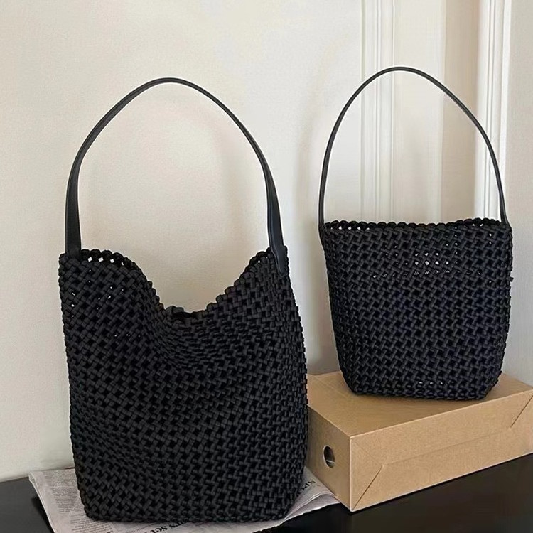 2025 夏の新ニッチ竹ハンドルクロスボディバッグ織り小さなバッグ女性のテクスチャハンドヘルドバケットバッグ
