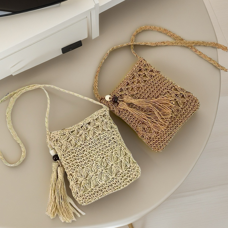 韓国版の3ピースタッセル織りバッグ、新しい紙ロープストローバッグ、多用途カジュアルホリデービーチバッグ、ショルダーバッグ、レディースバッグ