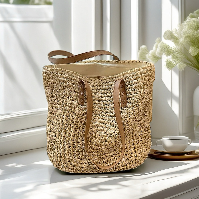 夏織りレディースバッグビーチホリデートートバッグ 2025 新しい夏大容量通勤多用途ショルダーバッグ