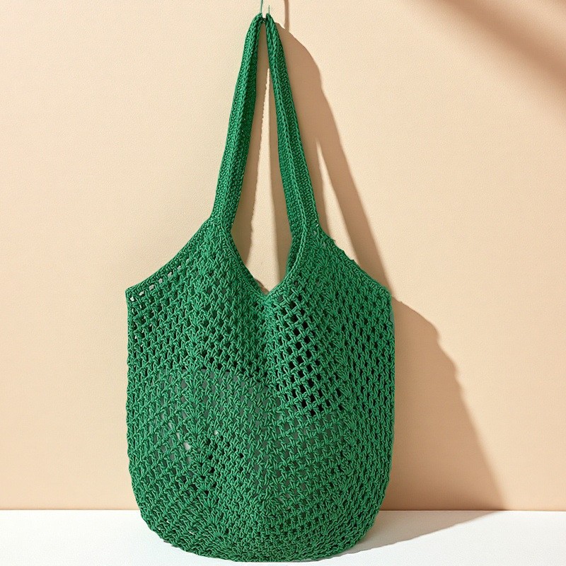 カジュアルな大容量の綿織りバッグ、新しい中空わらバッグ、レイジースタイルのショルダーバッグ、休暇ビーチバッグ、レディースバッグ