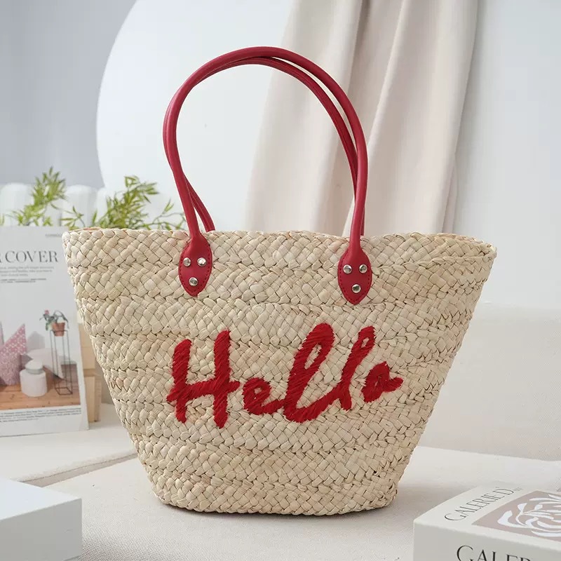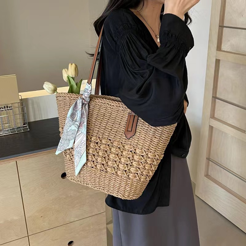 大容量編み女性バッグ天然トウモロコシ皮フランス式怠惰風シングルショルダーバッグ