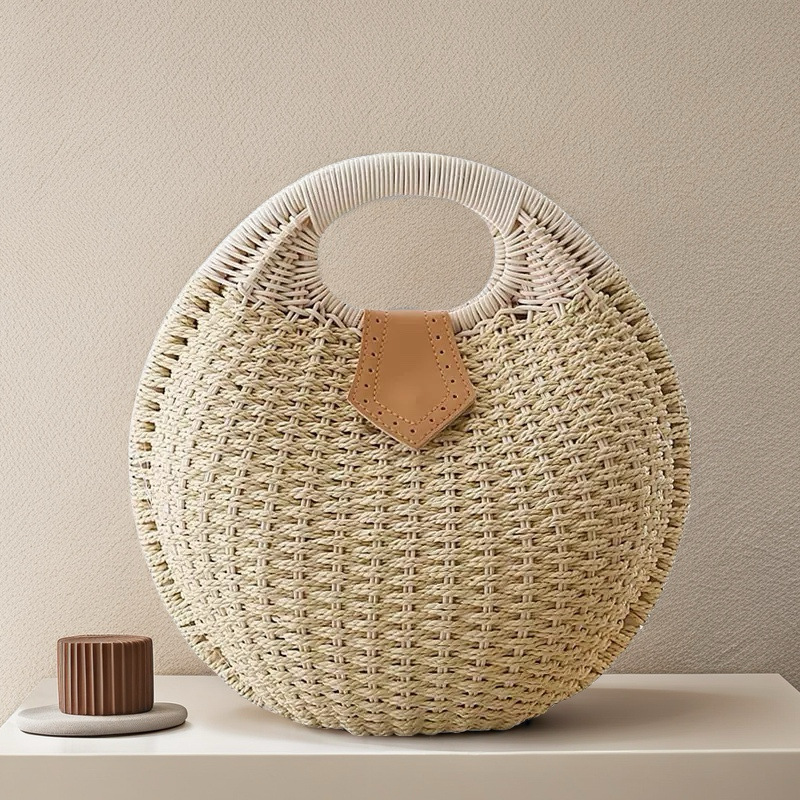 新しいファッションシェルわら織りバッグ紙ロープ手織りバッグボールバッグハンドバッグハイエンドのシンプルな籐バッグ