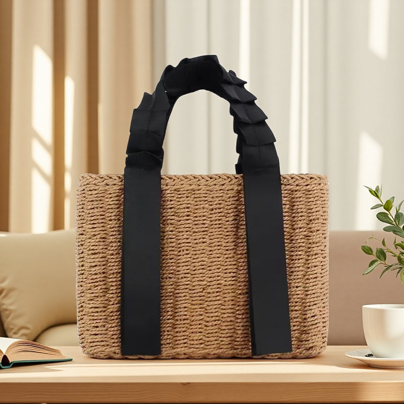 新品ワンショルダー木製看板草編みバッグ紙ひも手作り編みバッグ大容量トートバッグハンドバッグリゾートビーチバッグ