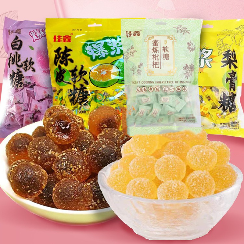白桃、みかんの皮、レモン、びわ、秋梨ペースト、ソフトキャンディ、破裂、どろどろのど飴、子供と高齢者向けのスナック