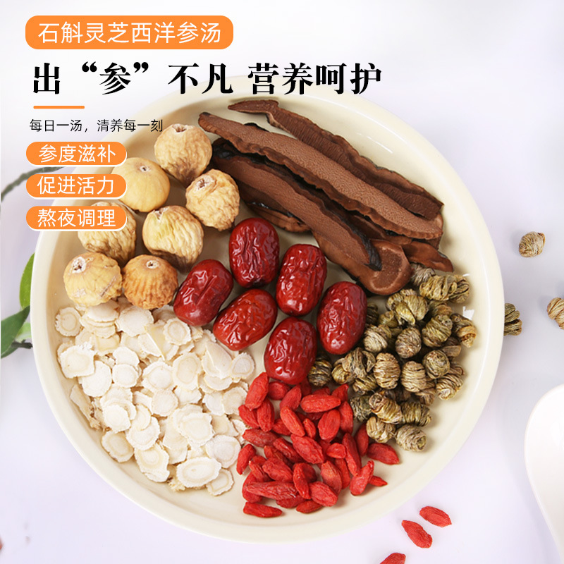 デンドロビウム、霊芝、アメリカ人参スープパック、夜更かし、残業、疲労、社交、熱い気質、調理スープの材料