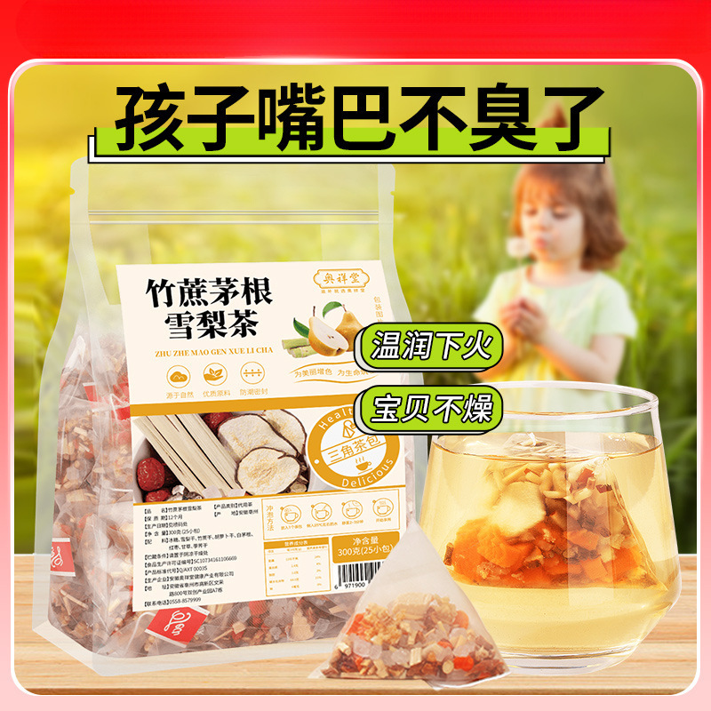 春夏の清涼飲料水、健康茶、竹蔗茅根雪梨ティーバッグ、清熱・消火、水栗子供用健康ポット