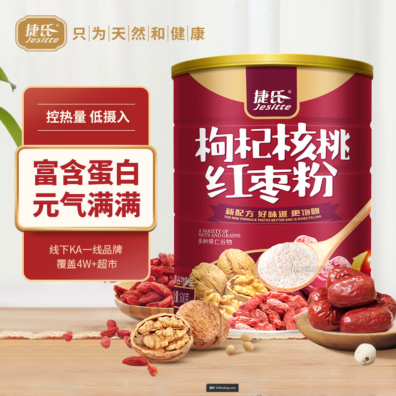 クコ、くるみ、ナツメヤシ、全粒粉、すぐに食べられる栄養価の高い朝食代替粉末ドリンク 600g*2缶