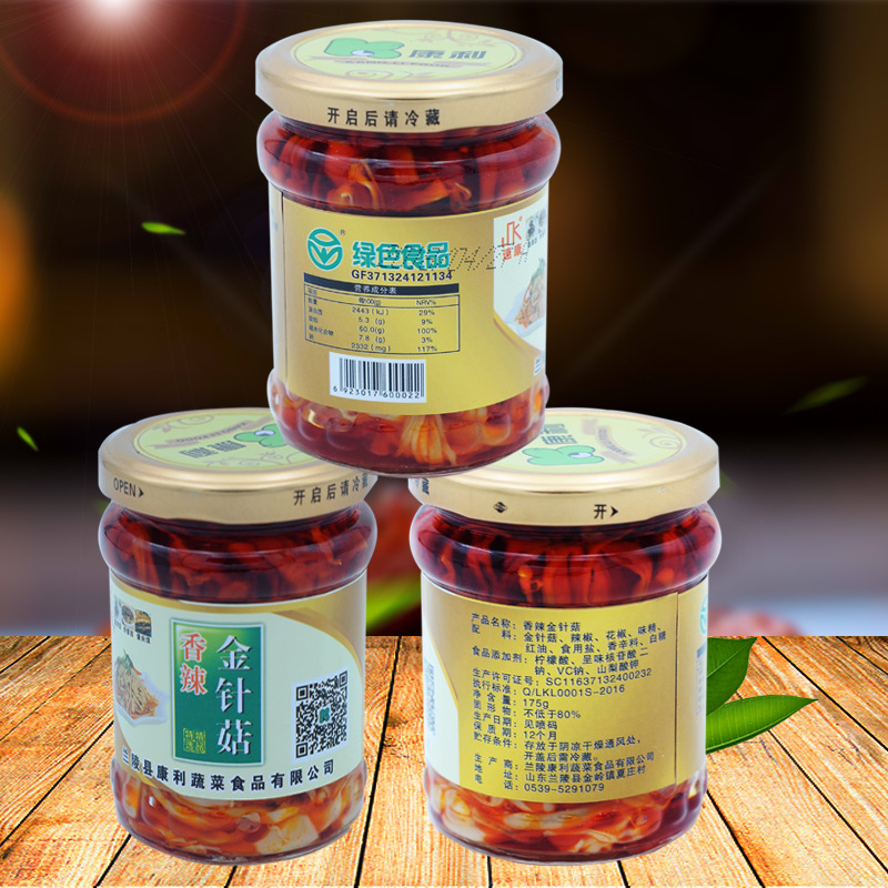 辛い赤油えのきのきのこ漬け、辛い漬物、麺類、スナック、すぐに食べられる175g瓶詰め
