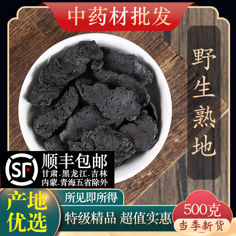 野生熟地黄、九蒸し、九日干し、九製熟地スライス、乾燥熟地粉末、熟地茶 500g