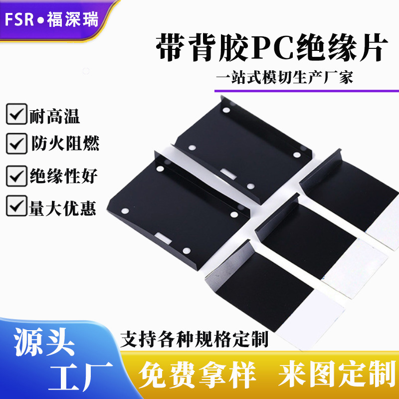 卸売高温新エネルギー電池折り曲げpc絶縁シートダイカット防火難燃黒帯バックゴムpc麦拉片