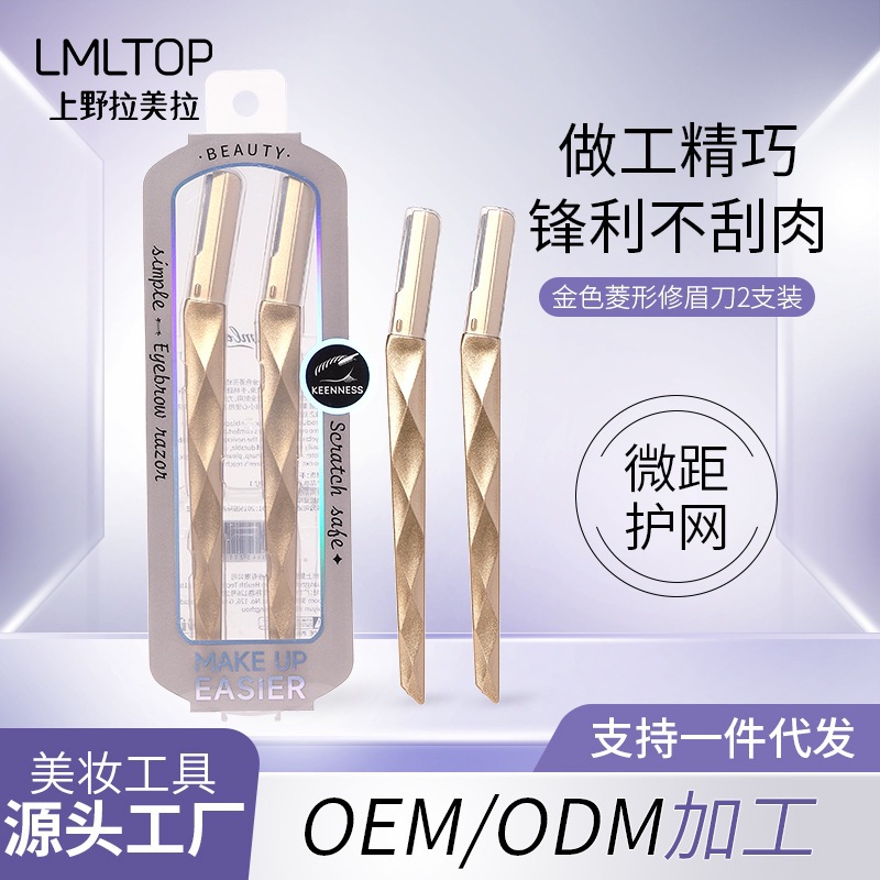 LMLTOP ゴールデン菱形眉毛トリマー 2 パックステンレス鋼マクロ保護ネット初心者眉毛トリマー JJF07