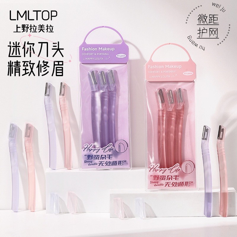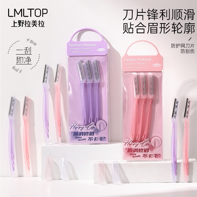 LMLTOP ステンレス鋼 3 ピース装飾眉毛カッターナイフヘッドマクロ保護ネットストレートハンドルシェーバー LLT05