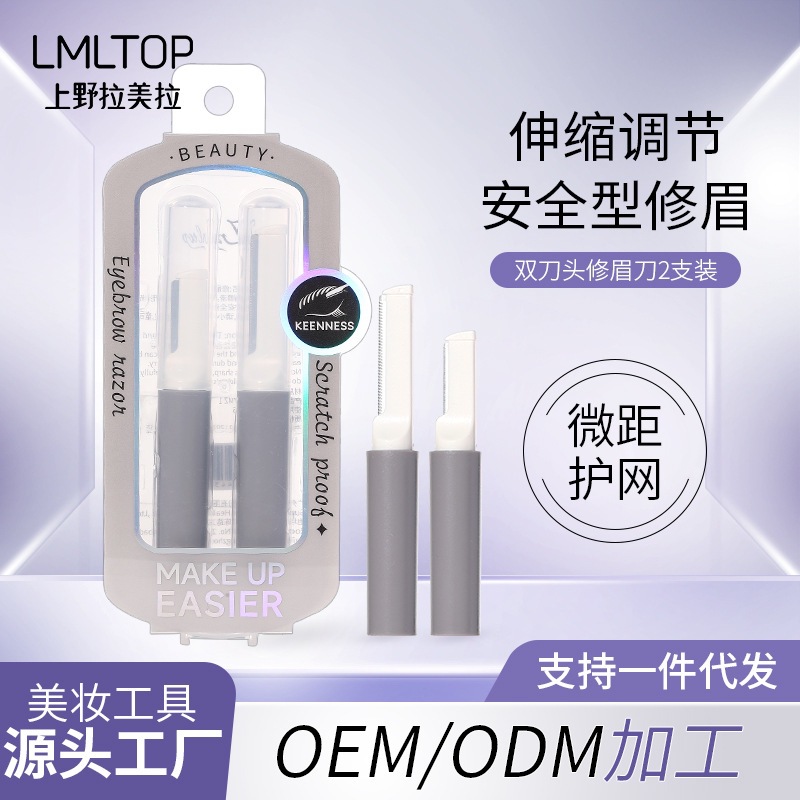 LMLTOP 大型および小型ヘッド眉毛トリミングナイフ 2 パックショート収納可能なポータブルマクロ保護メッシュ眉毛トリマー JJF10