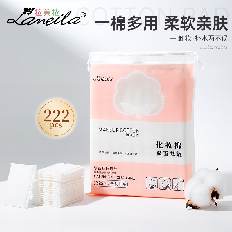 ラメラ 増粘コットンパッド 222枚入 両面エッジサンドイッチコットン ウェット湿布 メイク落としコットンバッグ B1092