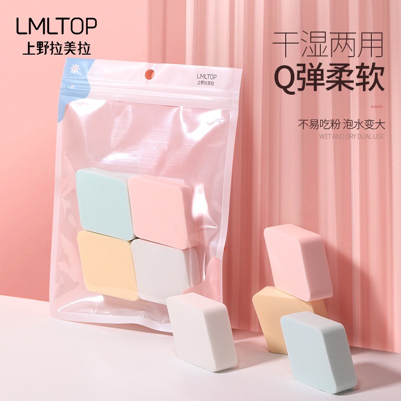 LMLTOP 20T ダイヤモンド型パウダーパフ 4個パック ウェット&ドライ両用メイクアップパフ A80234