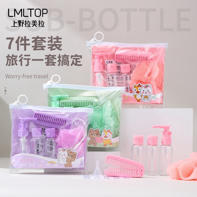 LMLTOP トラベルボトル 7本セット 化粧コットンボトル スプレーボトル バスボール コーム 携帯用空ボトル