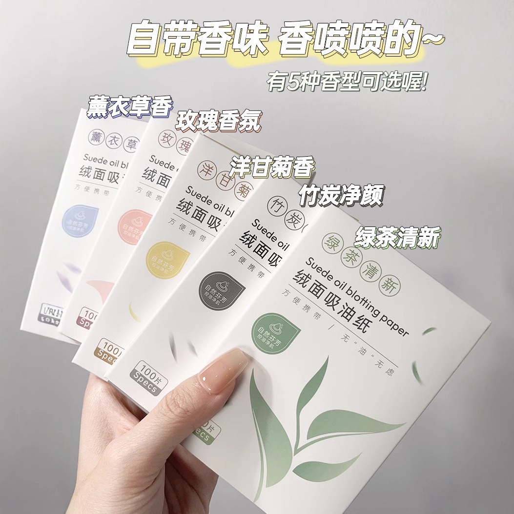 LMLTOP スエード油取り紙 100枚入 緑茶の香り 竹炭油取り紙 顔用油取り紙 SY039
