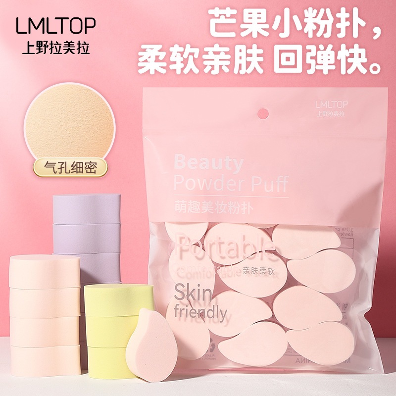 LMLTOP スモールマンゴーパウダーパフ 12個パック 親水性水浸しビッグメイクアップフルーツパウダーパフバッグ SY225