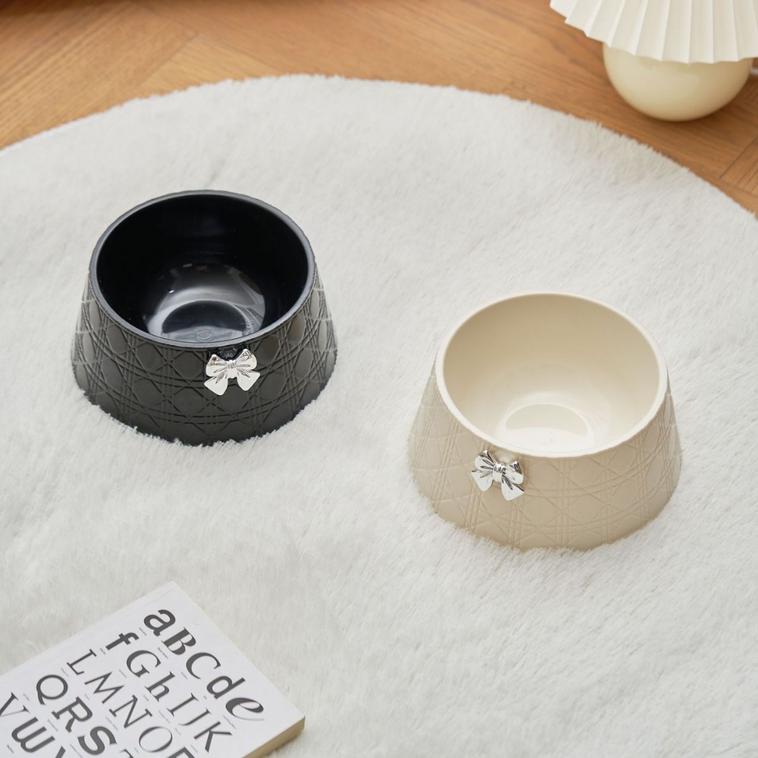 2019新しいかわいい蝶結びペットボウルins菱形紋路ペット猫ボウル漏れ防止犬ボウルボウル