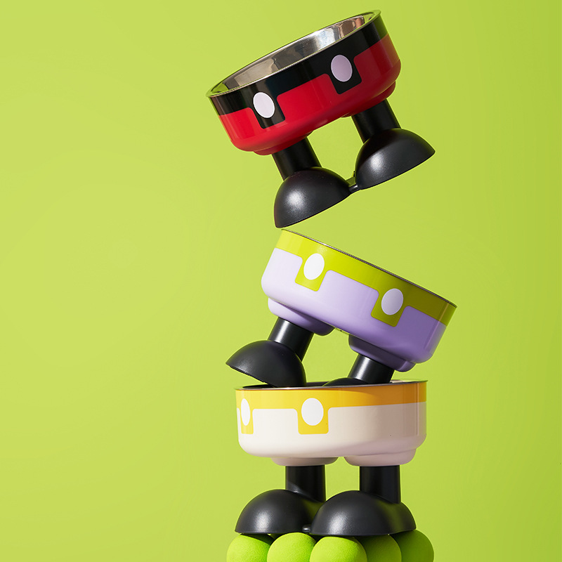 多機能ペットダブルボウル漫画ステンレス鋼ボウルペット食器ペット給水給餌ツーインワン滑り止めボウル
