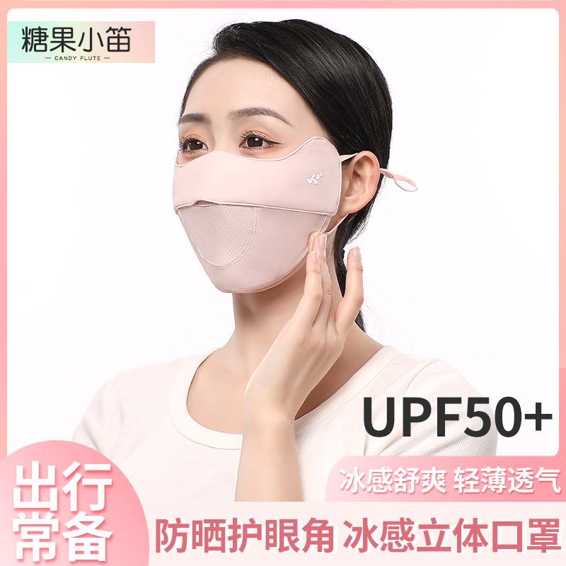 女性の夏の日焼け止め氷糸通気マスク顔全体目尻保護マスク紫外線防止マスク
