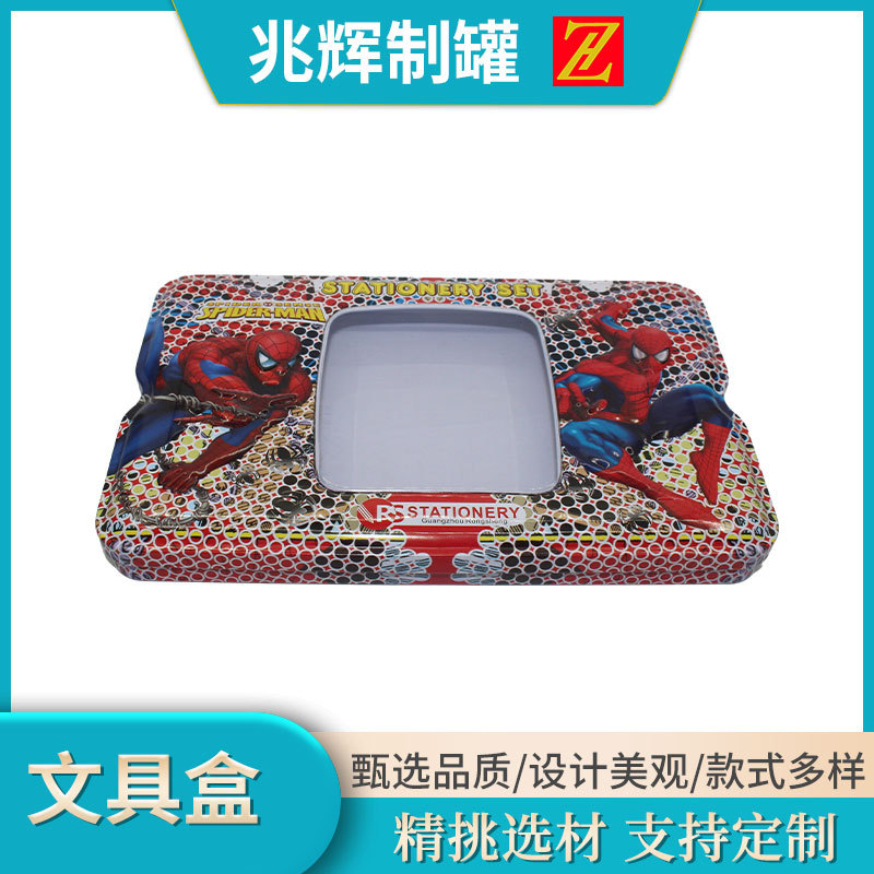 スパイダーマン長方形窓開けケース筆箱メーカー卸売り収納ケースブリキケース