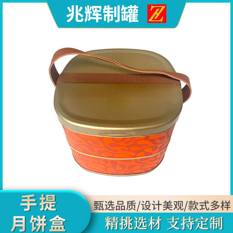 ブリキ正方形手提げギフトボックスクッキー缶二層月餅ボックス食品缶包装ボックス卸売り