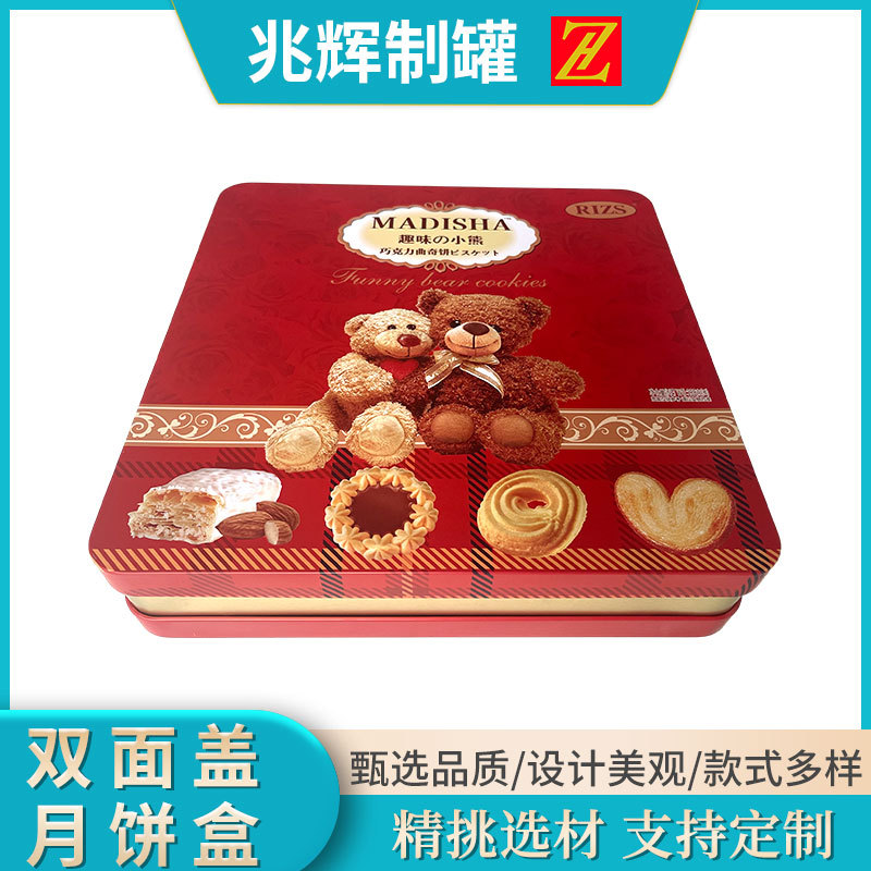 メーカーは正方形缶両面蓋鉄箱両面蓋月餅箱食品包装鉄箱金属礼箱を供給している