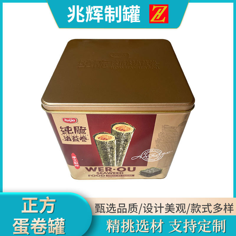兆輝の缶の卵の巻き缶の正方形の卵の巻き缶の鉄の箱のブリキの月餅の包装箱の正方形の食品の鉄の箱