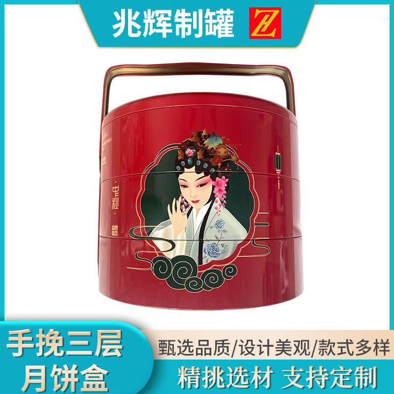 手挽き三層月餅箱三層手挽き缶三層手挽き食品缶三層クッキー缶金属箱卸売り