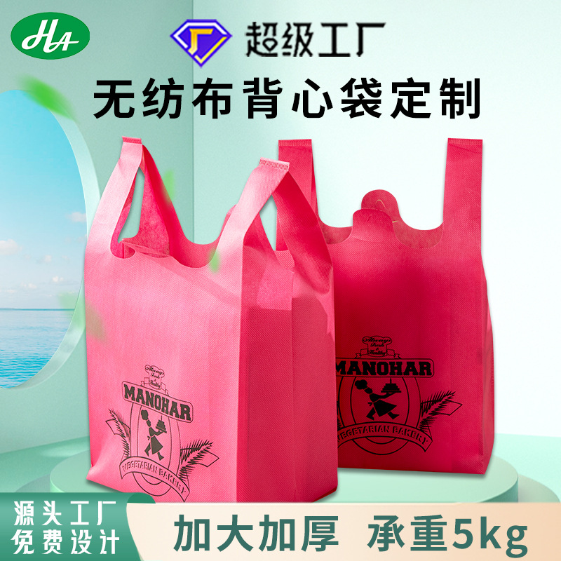 ホットプレス汎用不織布馬甲袋スーパー環境保護手提げ不織布袋美団外売袋ベストバッグ卸売り
